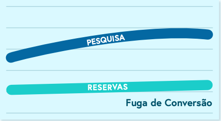 1. Pesquisa elevada & poucas reservas → Fuga de conversão